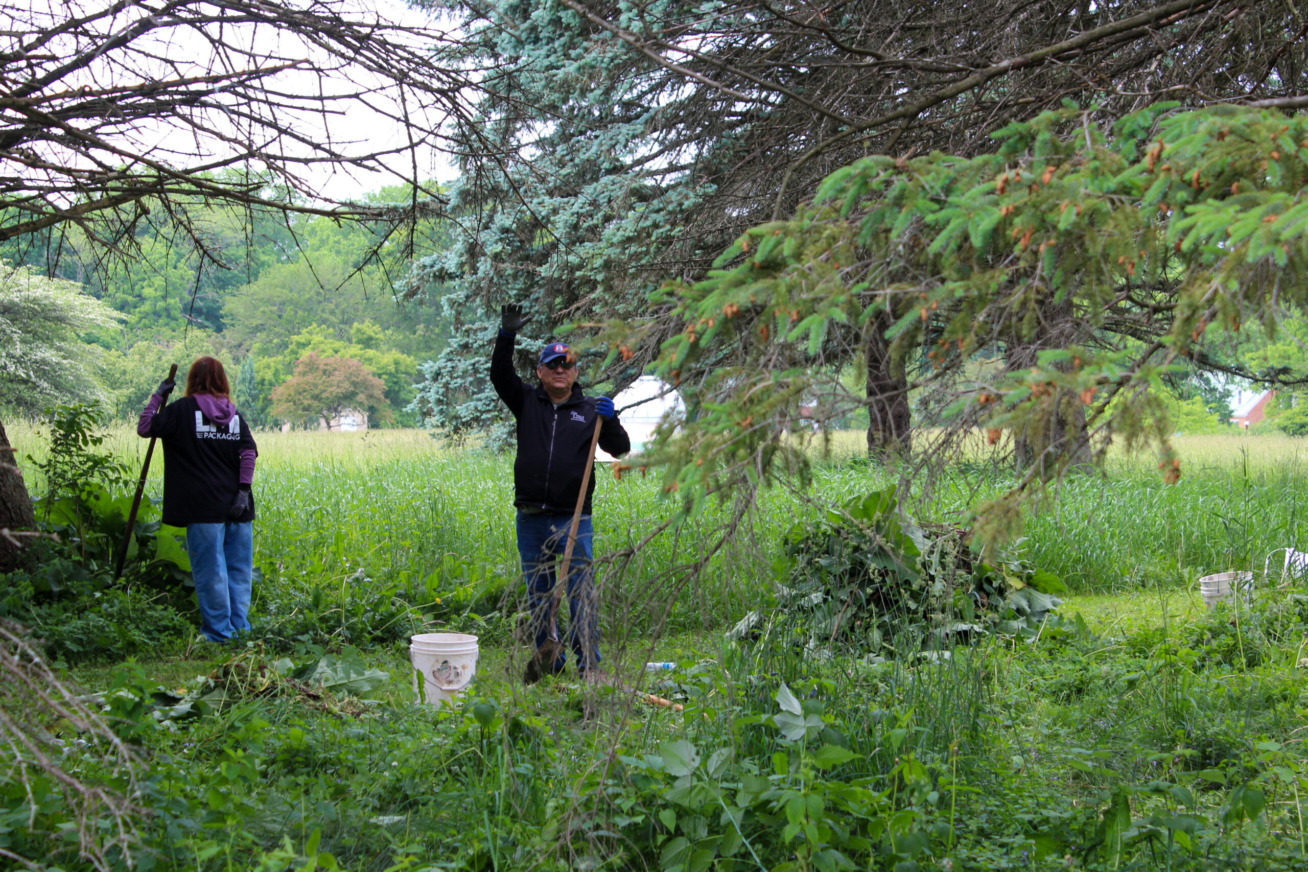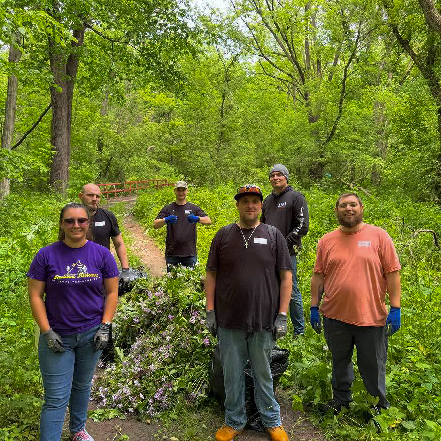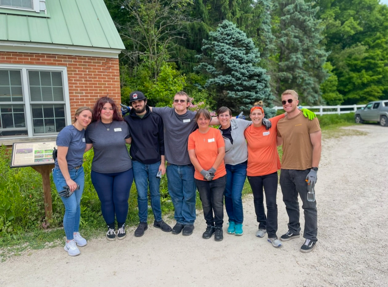 For the afternoon, our team traveled to Hawthorn Hollow Nature Sanctuary and Arboretum to help with various tasks around their grounds. We had teams all throughout the sanctuary pulling invasive plant species, adding mulch in plant beds, and even laying some blocks by their town hall!