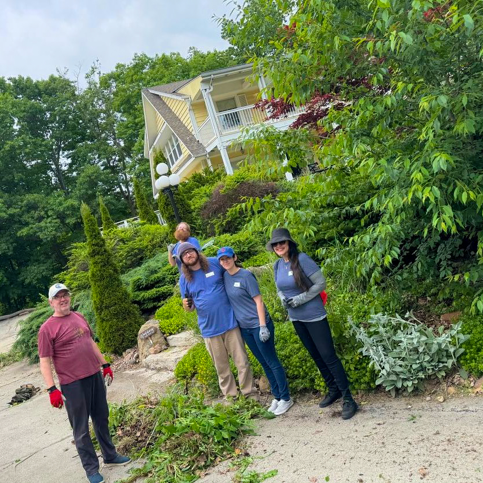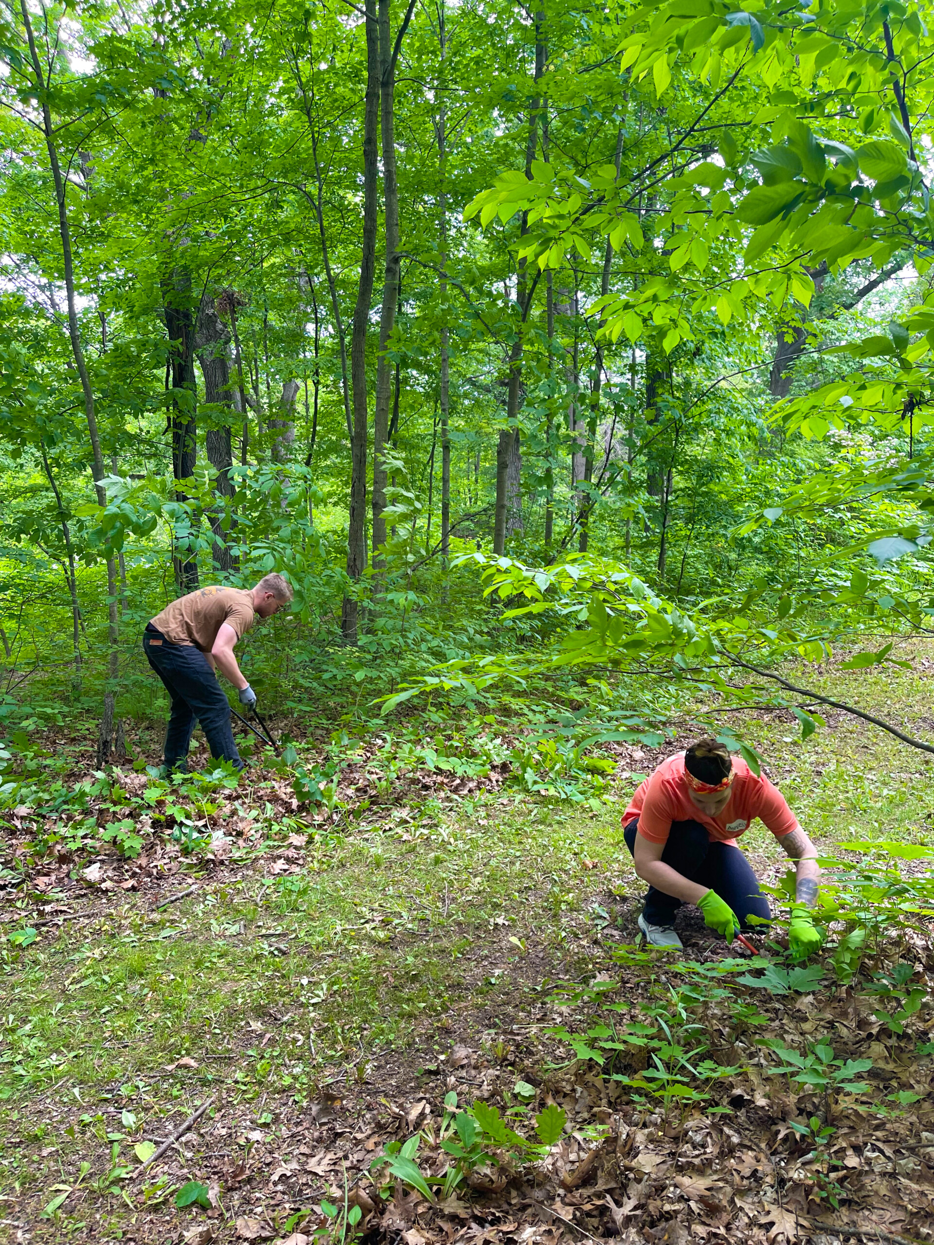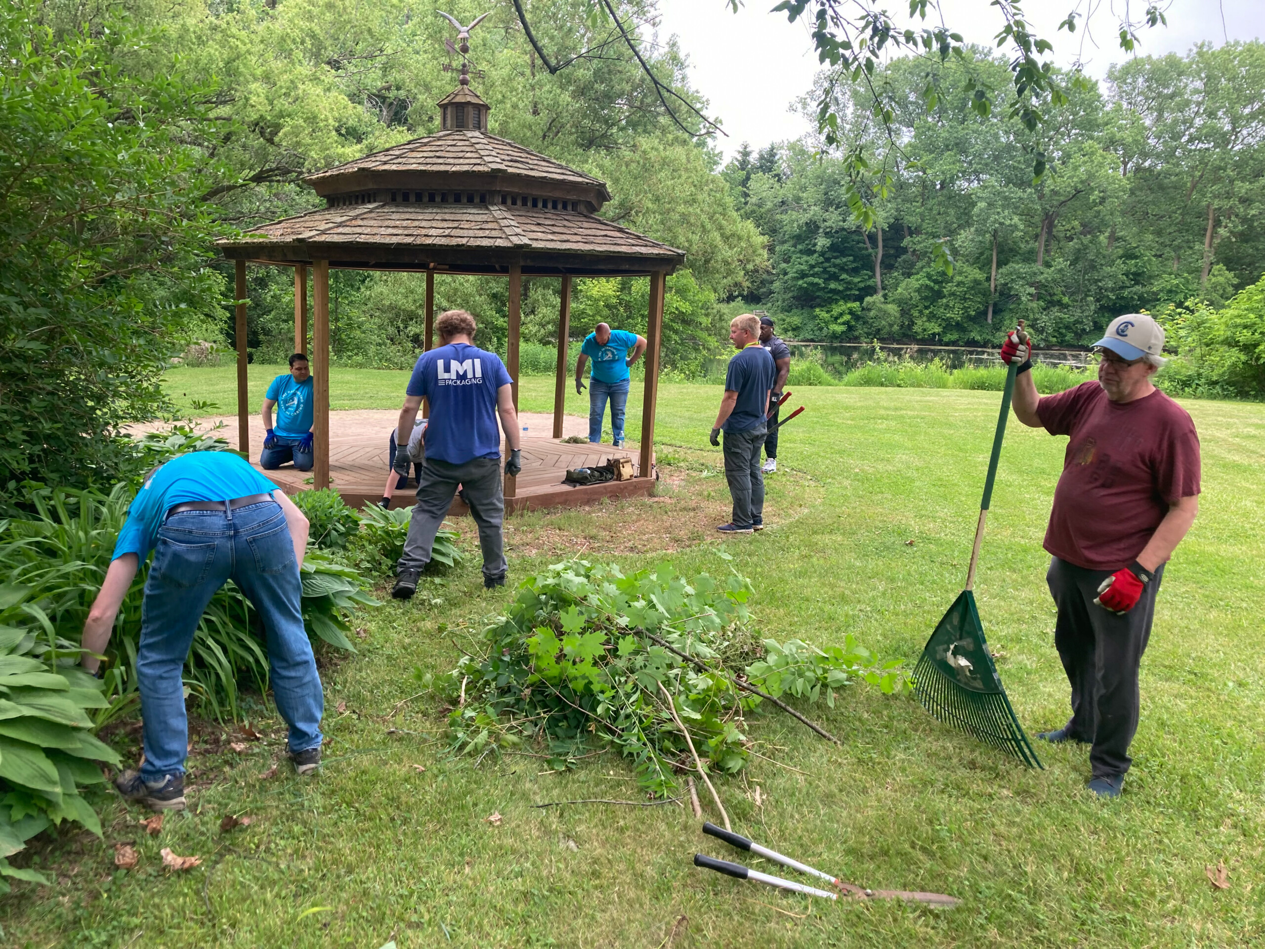 For the afternoon, our team traveled to Hawthorn Hollow Nature Sanctuary and Arboretum to help with various tasks around their grounds. We had teams all throughout the sanctuary pulling invasive plant species, adding mulch in plant beds, and even laying some blocks by their town hall!